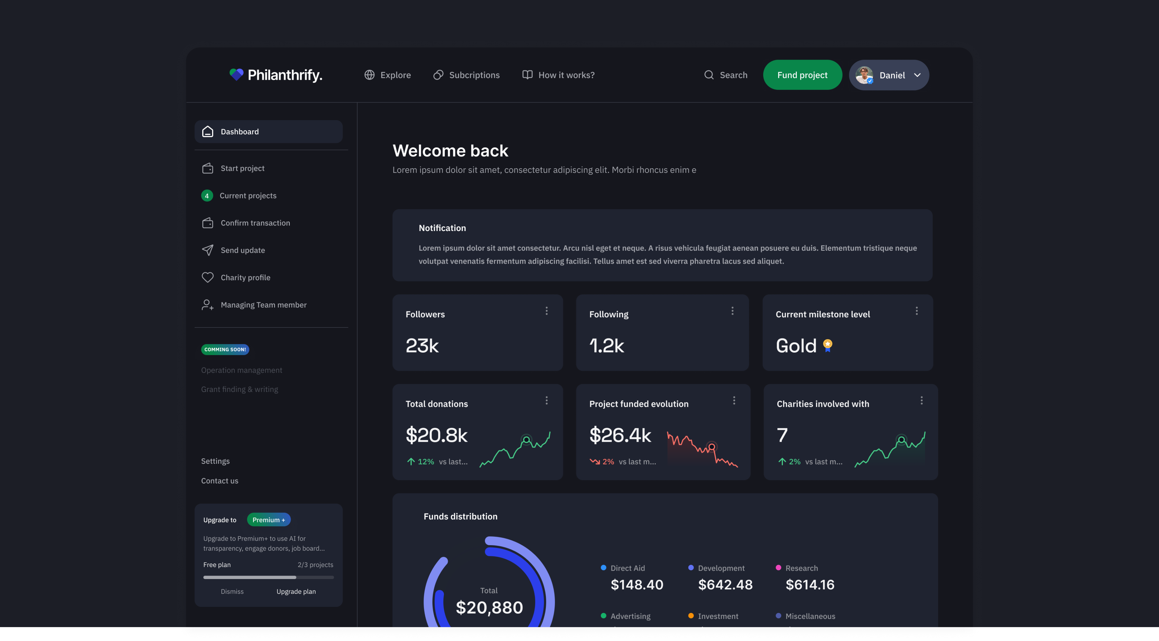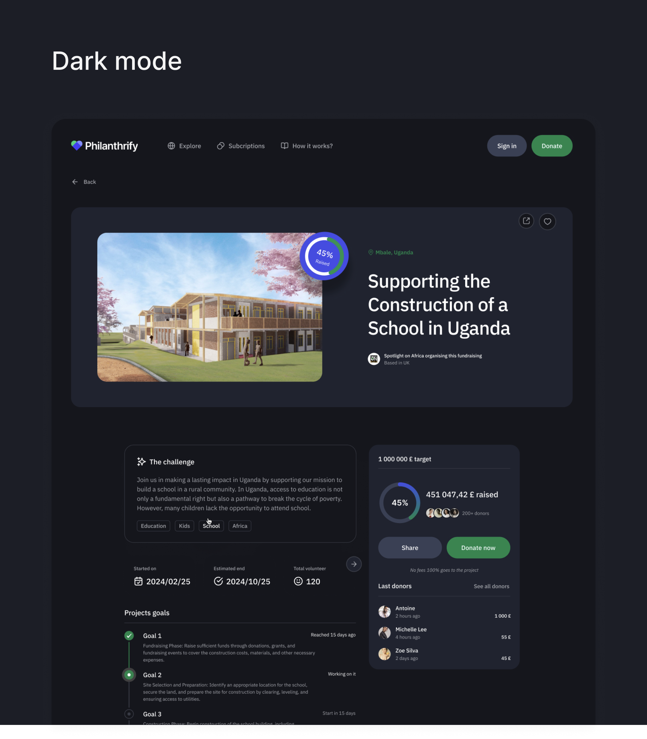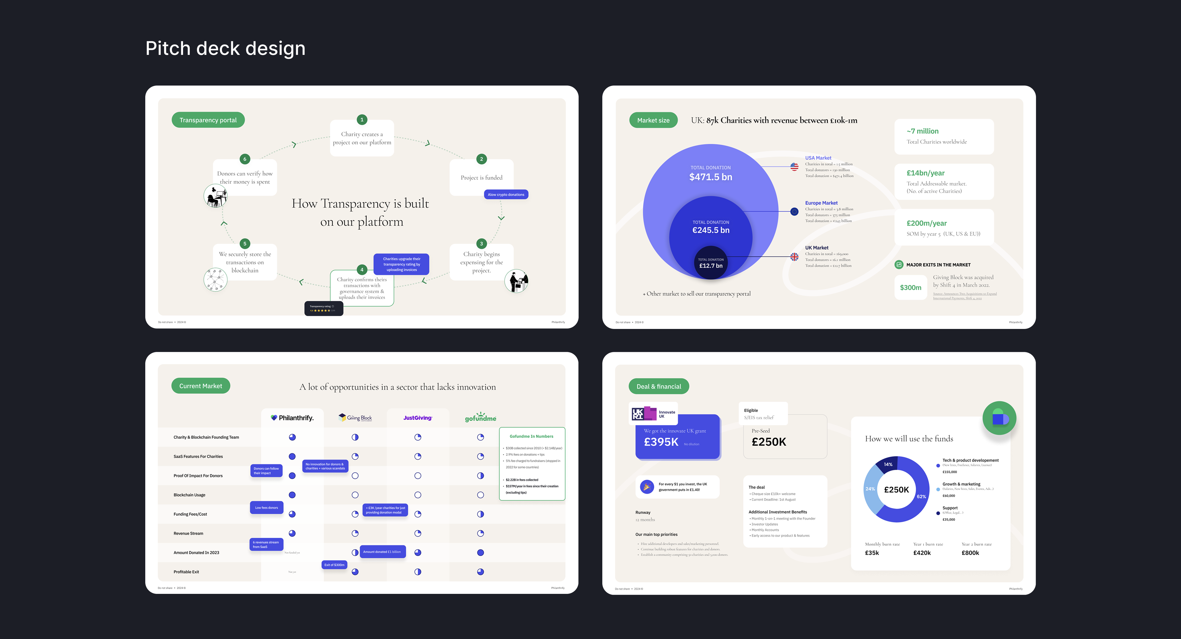 SaaS startup pushing the boundaries of technical excellence in the charity industry. By proving the impact of donations to charities, we provide a needed connect between the donor and the end beneficiary. To that end we are also providing charities with needed services (in a SaaS approach) to help with website design, marketing campaigns, grant applications and other services that may be difficult to achieve for non-technical trustees.